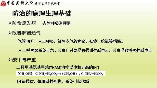 - 病生治疗》治疗原发病 》改善肺通气(注意要给肾脏反应时间) 》考虑肾脏,慎用碱性药,可用无钠有机碱:三羟甲基氨基甲烷 (https://qn-st0.yuketang.cn/FihJ22KlU76zmdem3j-whgu17gvH)
