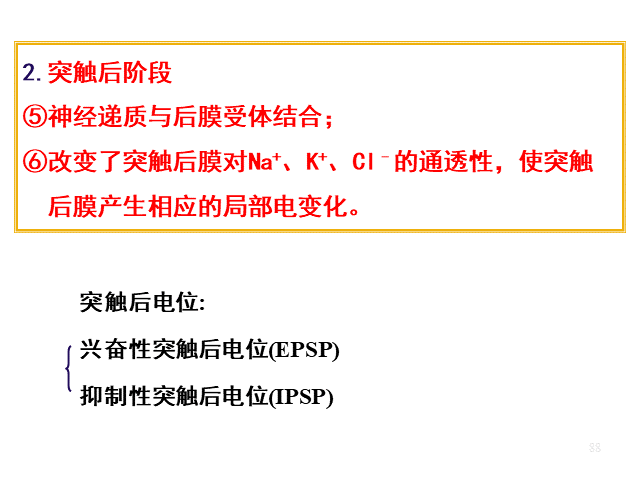 - 共存递质:共同存在于突触前神经末梢的化学物质。