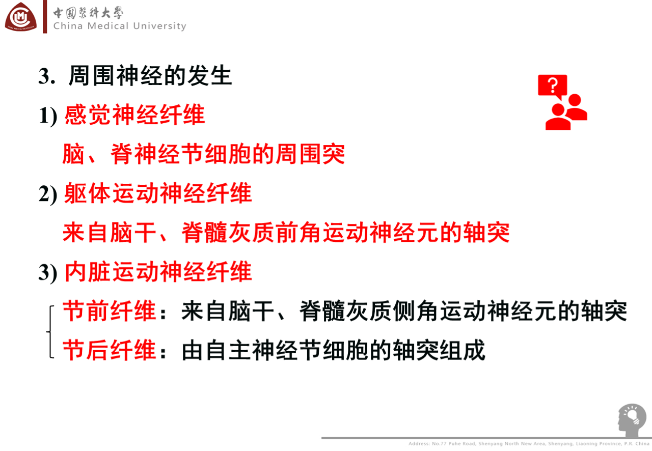 - 神经核:形态和功能·笑死的胞体聚集成的团或柱;在周围·叫神经节。