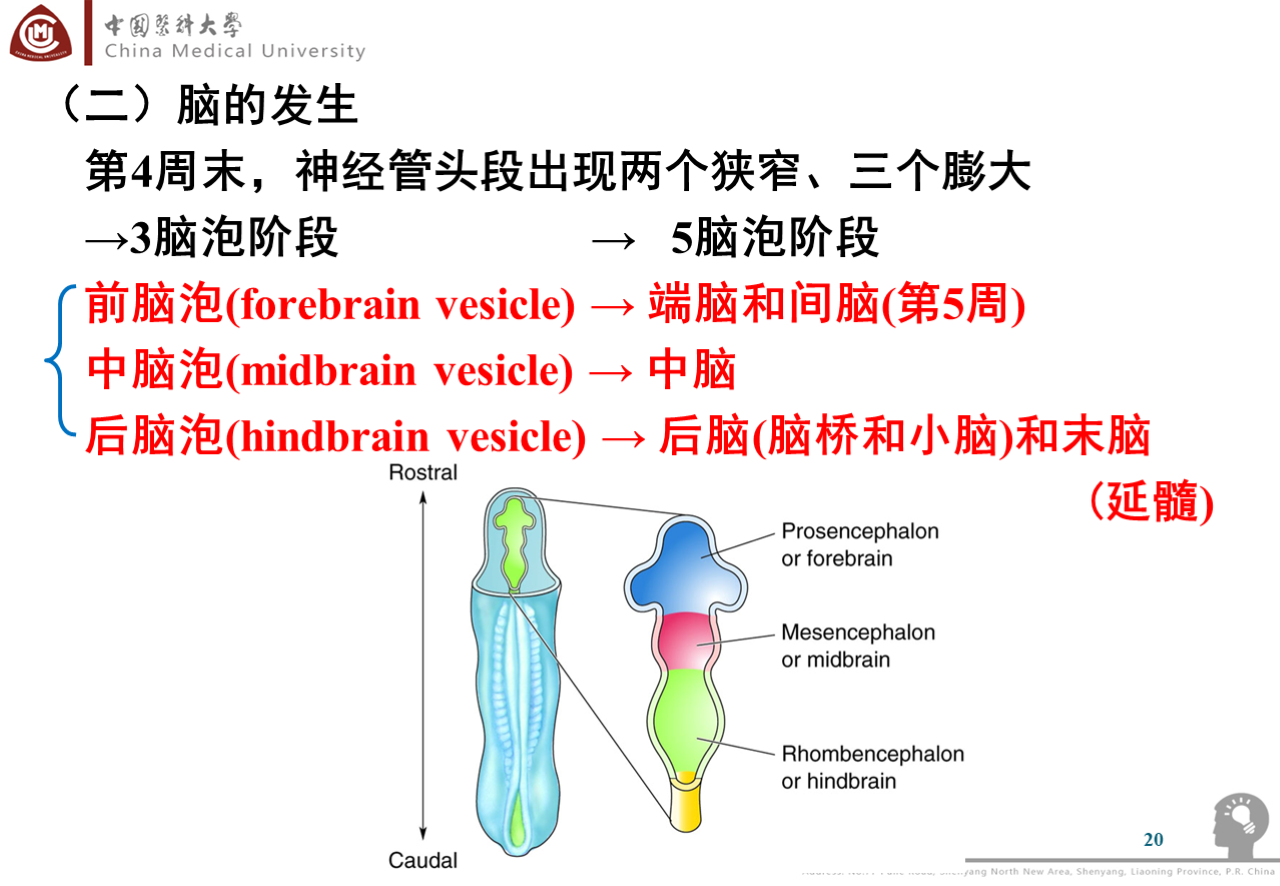 - 脑干:自下而上由延髓、脑桥、中脑三部分组成。位于颅后窝前部,上接间脑,下续延髓,背面与小脑相连。
